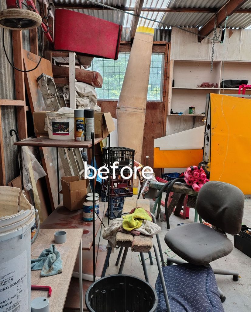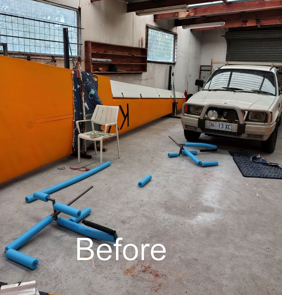 Rob Moffat informed me that he will be requiring the workshop tidied and our wings removed by 1.Sep. as he and Laurie Simpkins will be conducting a mandatory 10-Year Survey on the clubs Puchatek VH-GKD.