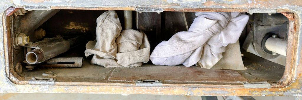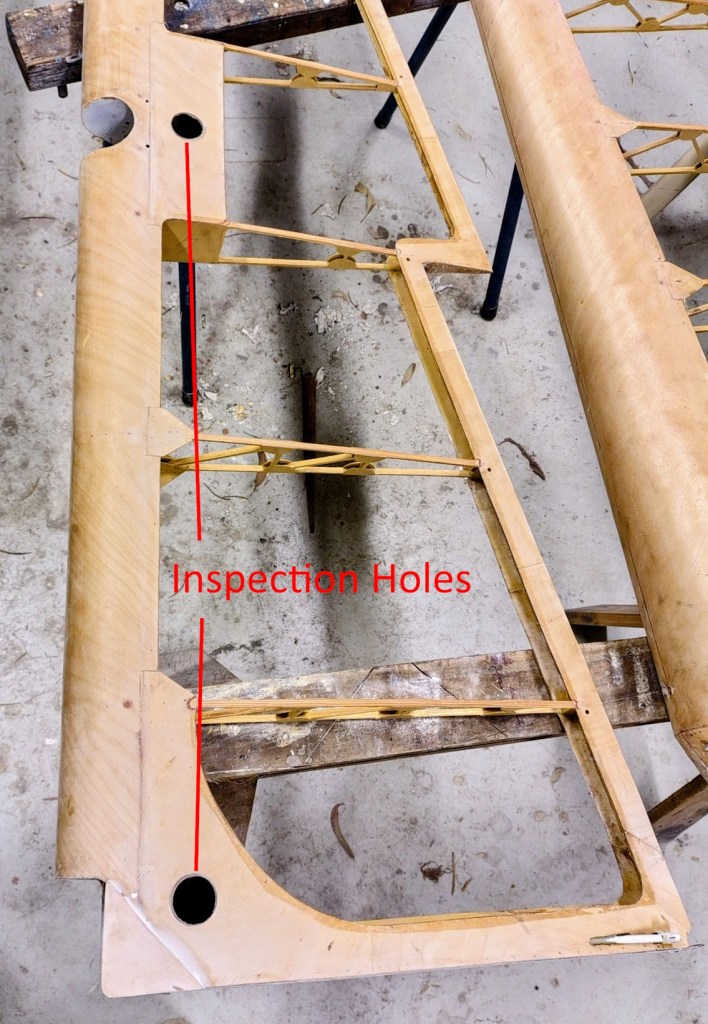The above mentioned trim tab recess repairs have been done. We’ll ask Pete whether it’s ok to fabric over the 40mm inspection holes. They might be handy for future inspections, and easily re-covered with Orotex – one of the advantages of that system compared to conventional systems which need to have the various paint and chemical layers washed off and then re-applied following the inspection/repair procedure.