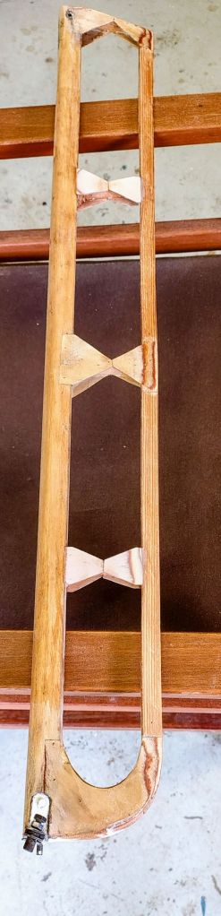 Thanks to Pete we had some suitable plywood to hand to make replacement gussets. Here is the repaired trim tab: