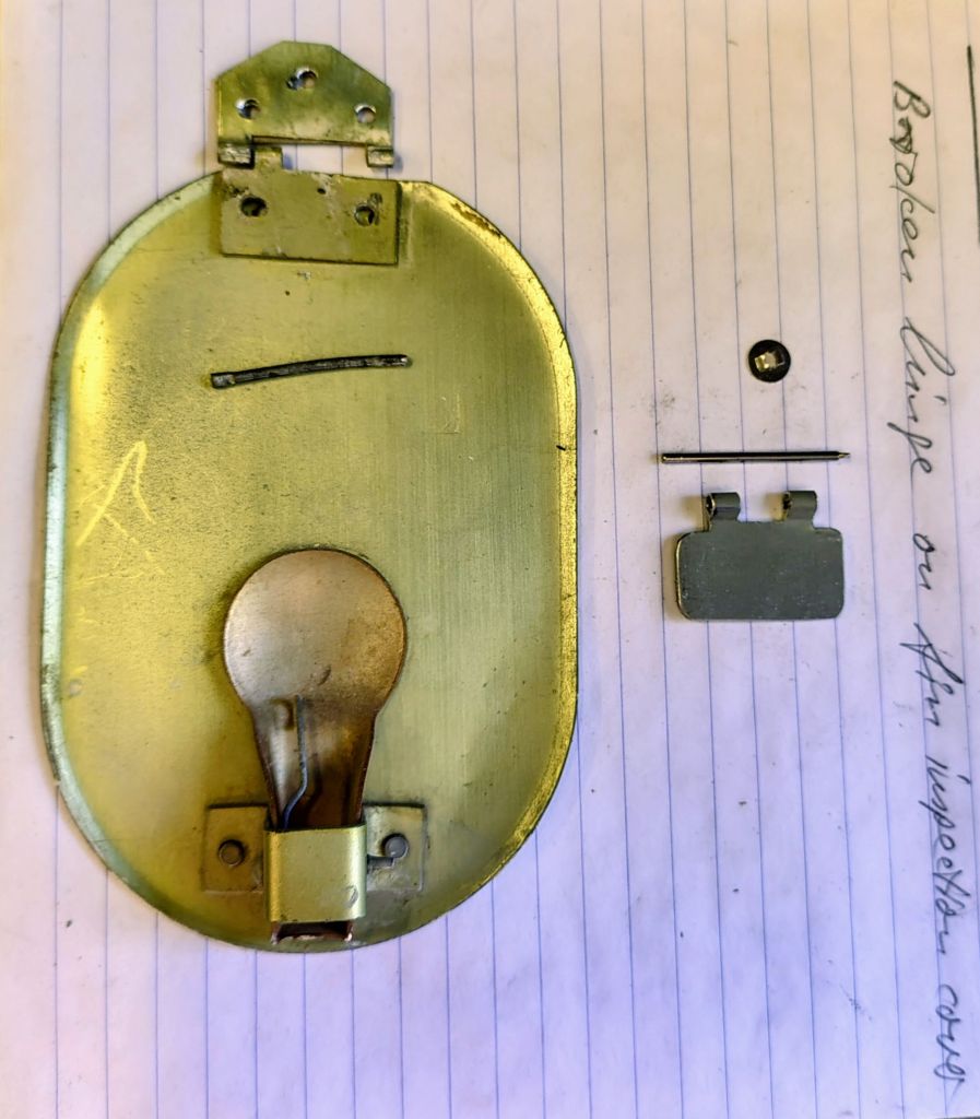 The new hinge is on the right. It’s made from 0.5 mm 6061 aluminium sheet, same as the original from which one of the hoops had broken off.
