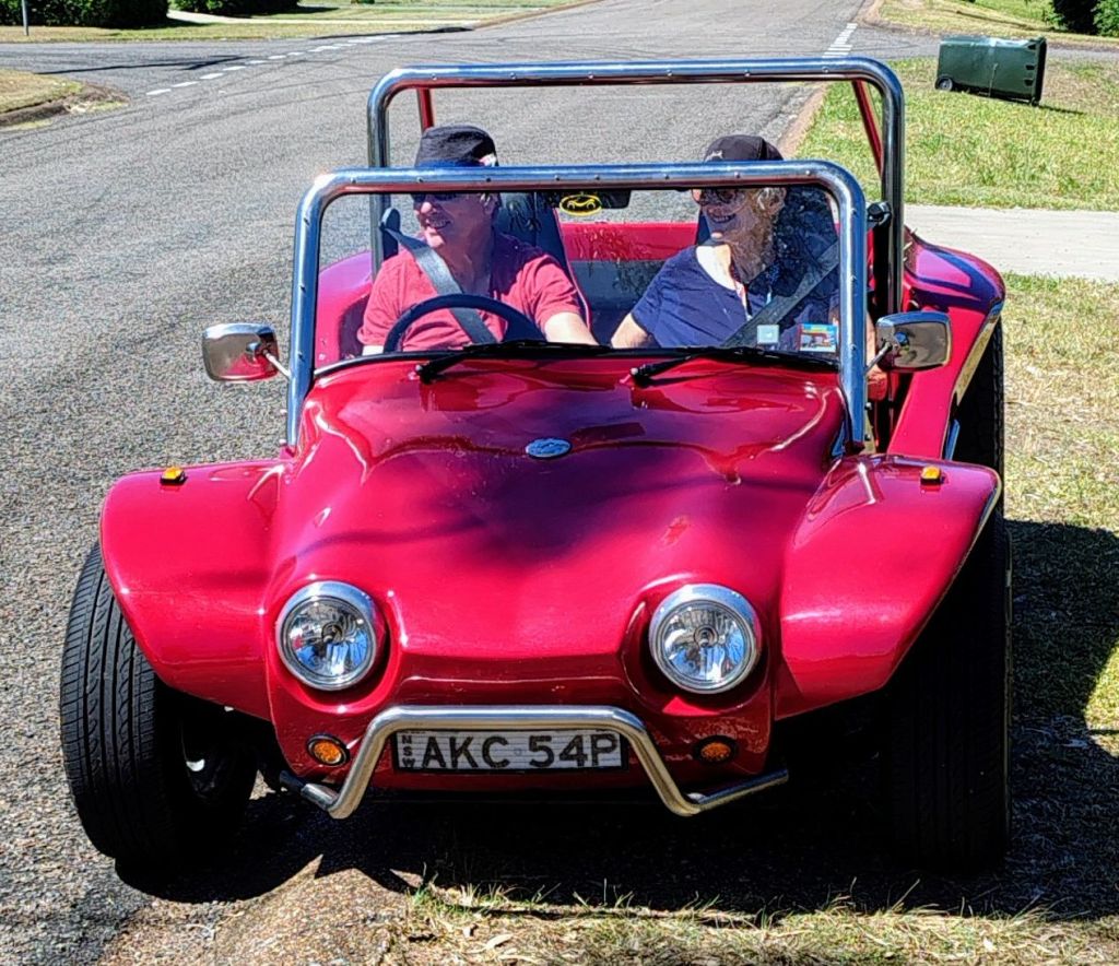 Forgot to include this shot from the other day when Pete was here. He kindly took Liz for a spin in his beach buggy. It took her a while to get that grin off her face afterwards!