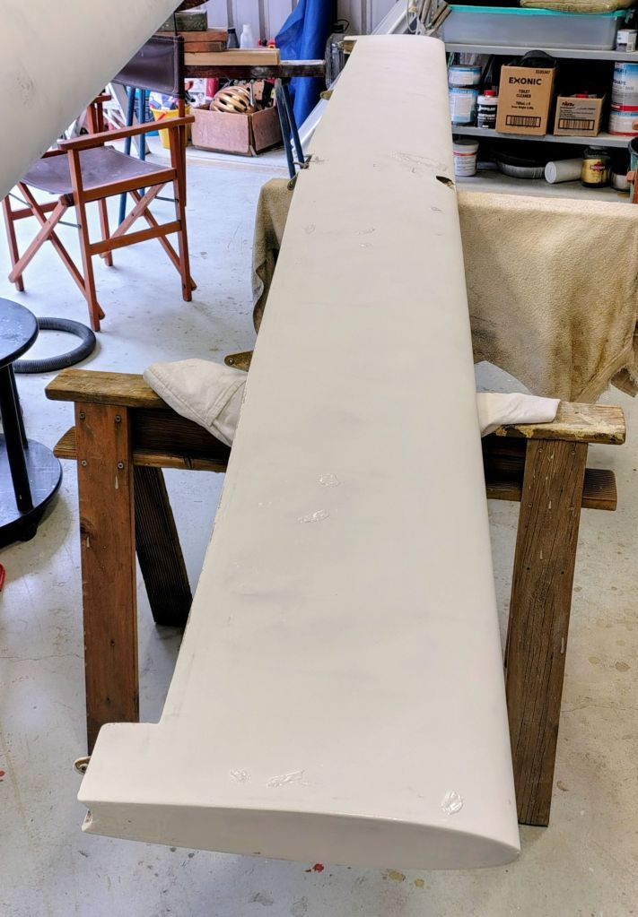 Today was much milder and I was able to finish the sanding of the horizontal stabiliser with 120 followed by 240 grit.