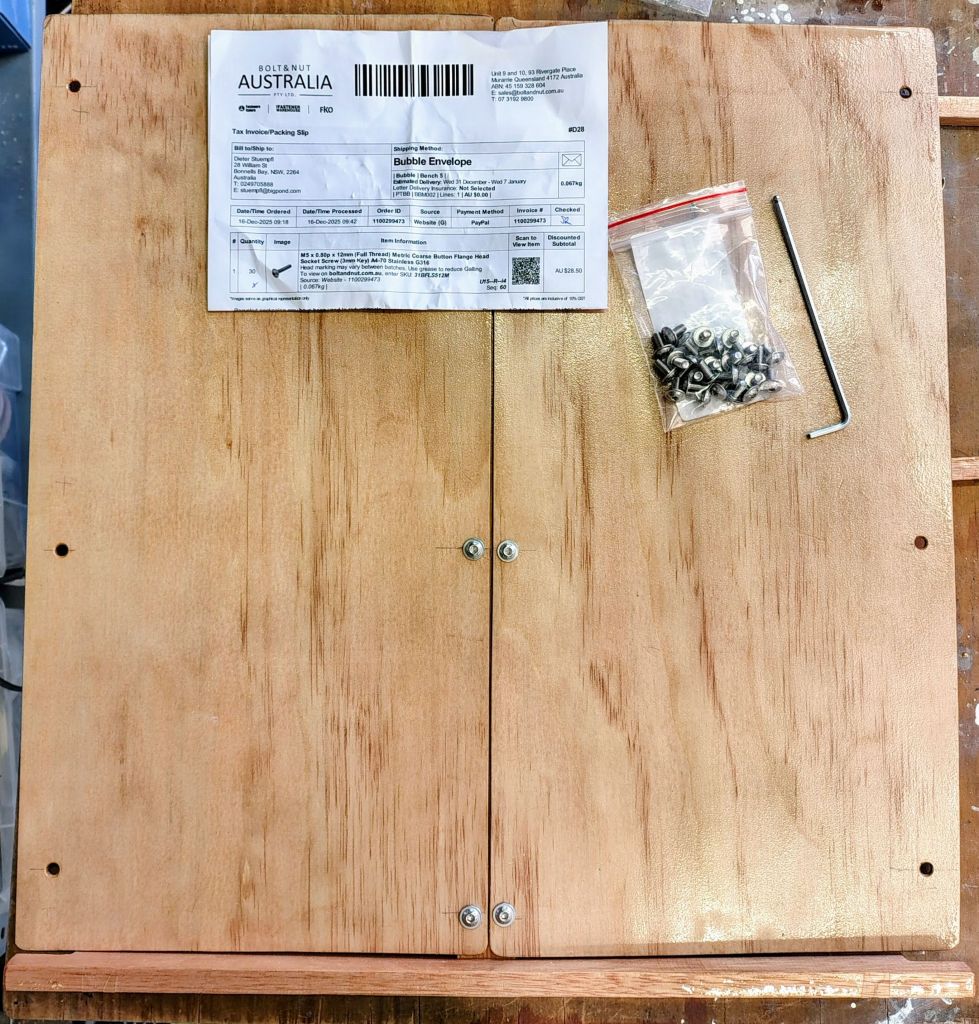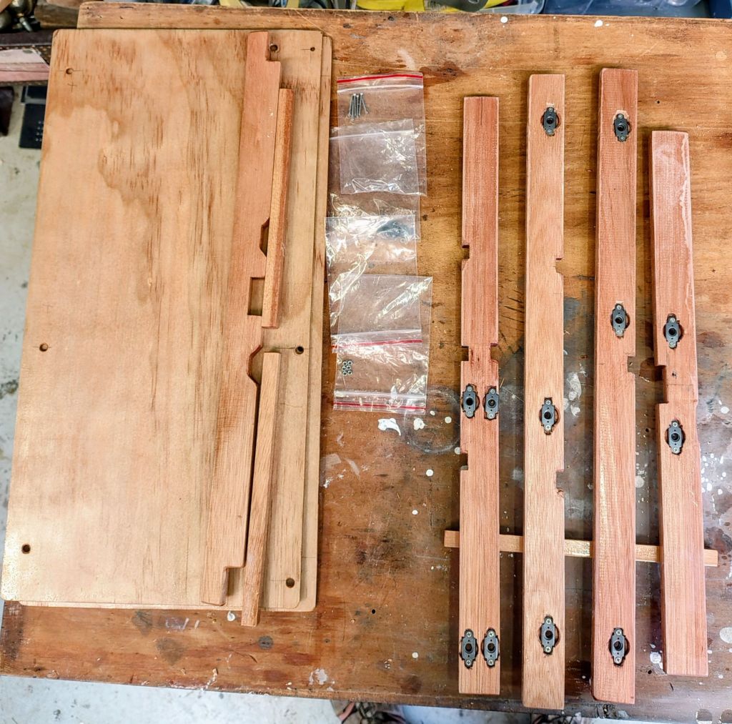 The nut plates were fitted into the frames and secured with M2 stainless steel c’sk screws. I was going to use small wood screws but didn’t like the idea in the end. This is a much sounder way to hold the nut plates in their recesses.
