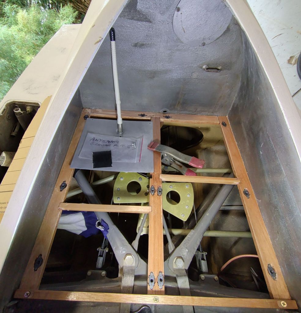 Epoxied the last cross braces for the luggage deck and checked the antenna location.