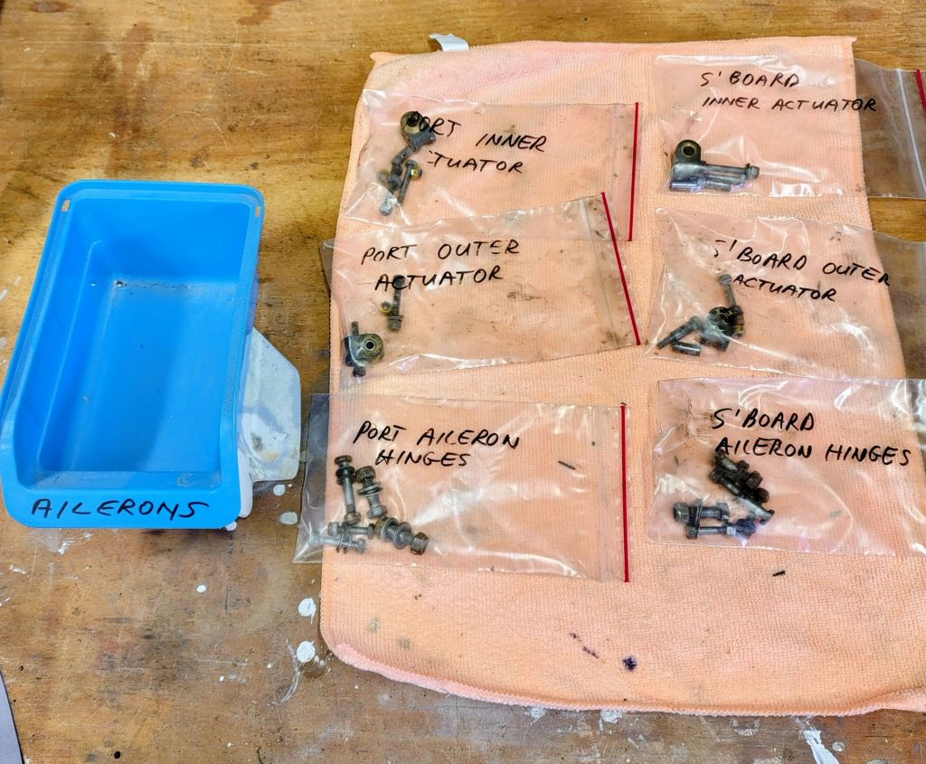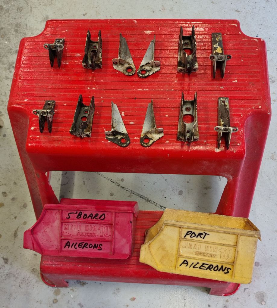 When we got the ailerons back to Bonnells Bay, I removed all the hinge fittings.