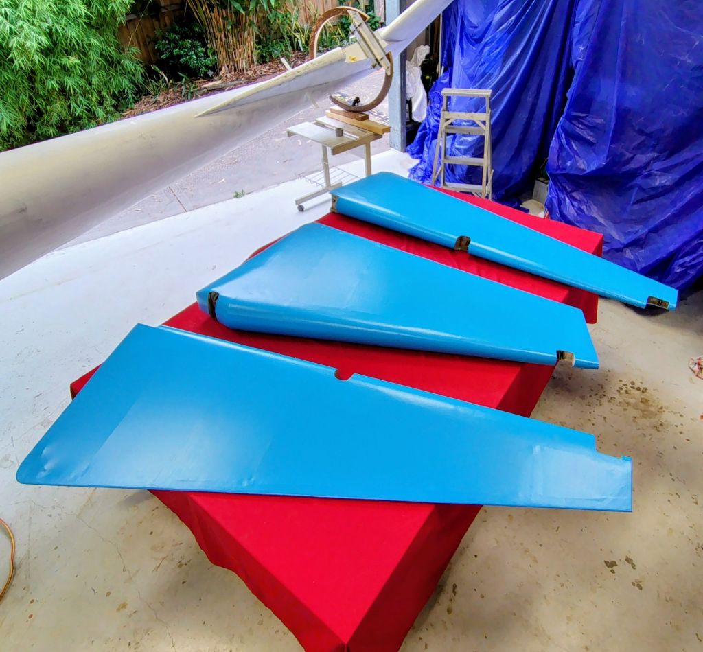 Speaking of fabric covering, the tailfeathers are done, put the finishing touches on today (well, Laurie might find a few more wrinkles to iron out.